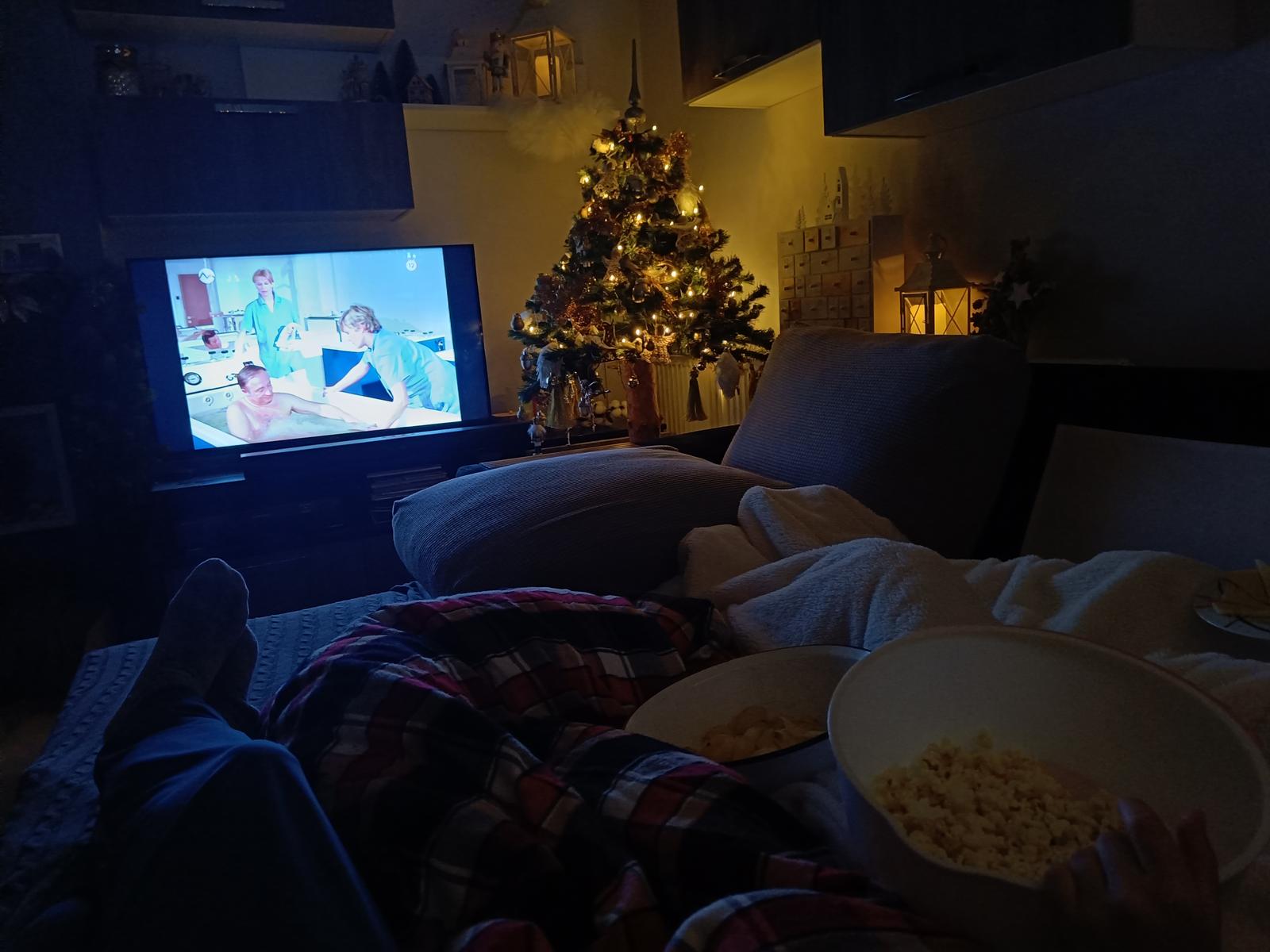 Porozhlédnu se po vánočně vyzdobeném pokoji. Všímám si detailů, které o Vánocích miluji. Světýlka, svíčky, dřevěný adventní kalendář, teplá deka ledabyle přehozená na gauči, k tomu ve vzduchu se vznášející vůně jehličí a v mysli si říkám: „Vydrž! Už jen pár dní.“ V představách vidím, jak ležím na roztaženém gauči v obýváku zachumlaná pod teplou dekou a s dětmi se ve vánočních pyžamkách díváme, jak to Matýsek nestihl v S tebou mě baví svět, jak se z obyčejné dívky stala princezna ve Třech oříšcích a s manželem vzpomínáme na časy minulé s filmem Pelíšky.