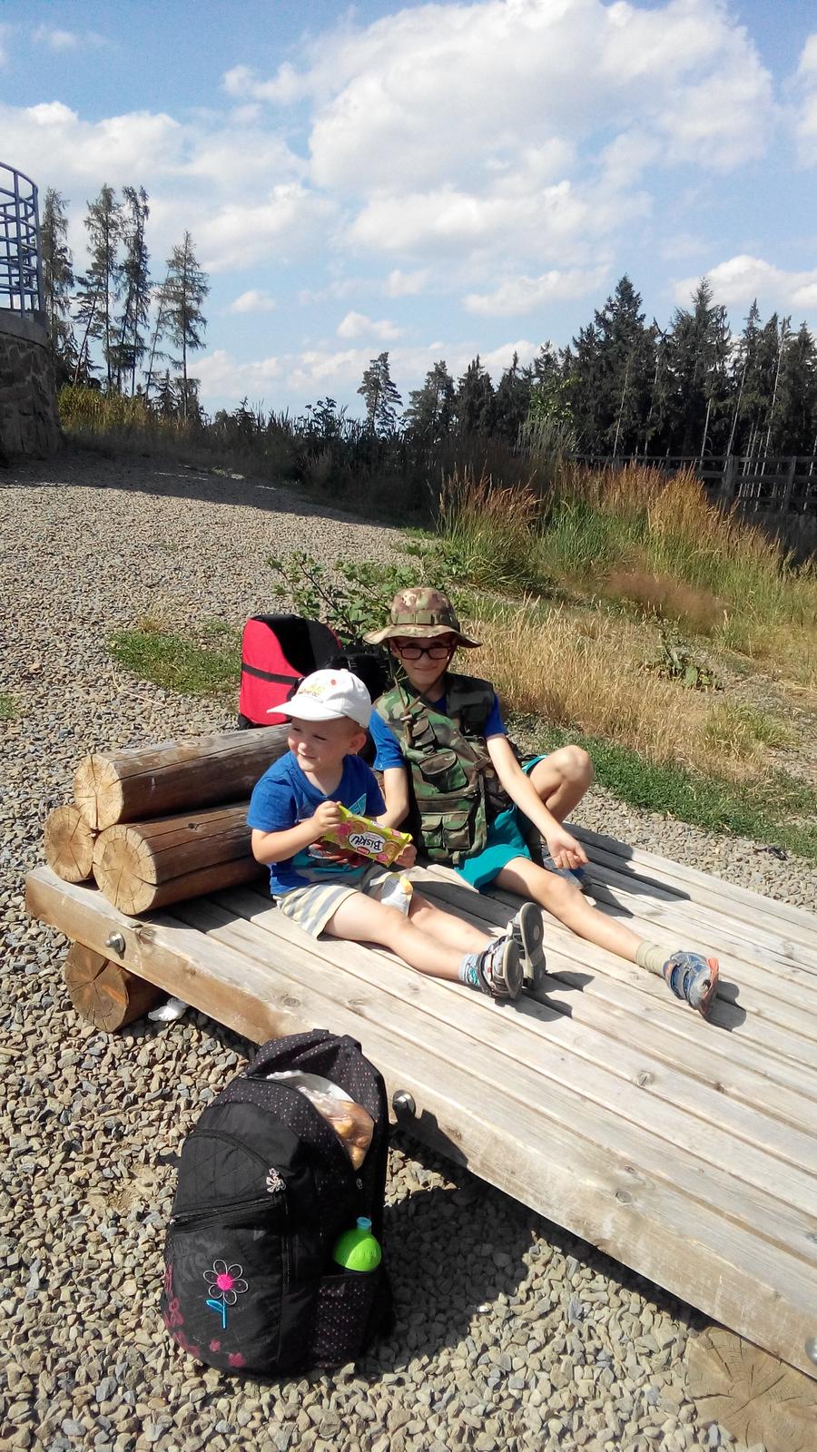 Poslední balíček jsme si vzali na výlet, na rozhlednu Velký Kosíř. Je to docela dlouhá cesta, kluci zvládali krásně šlapat a jaké bylo zklamání, když rozhledna byla zavřená. Ještě že jsme měli svačinu a i sušenky a to je trochu uklidnilo a dodalo jim energii na cestu zpátky.