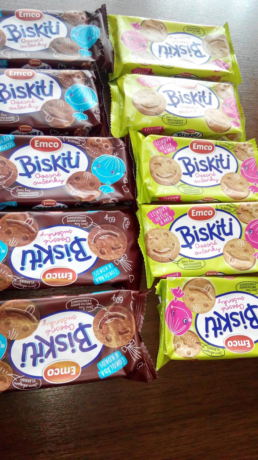 Sušenky nebyly moc sladké, obsahují hlavně ovesné vločky, ovesnou mouku, slazené jsou medem. Vojta má rád hodně sladké věci, ale sušenky mu hned zachutnaly a snědl s Daníkem celé balení, jednu jedinou sušenku jsem zachránila pro sebe a i mě moc chutnala.