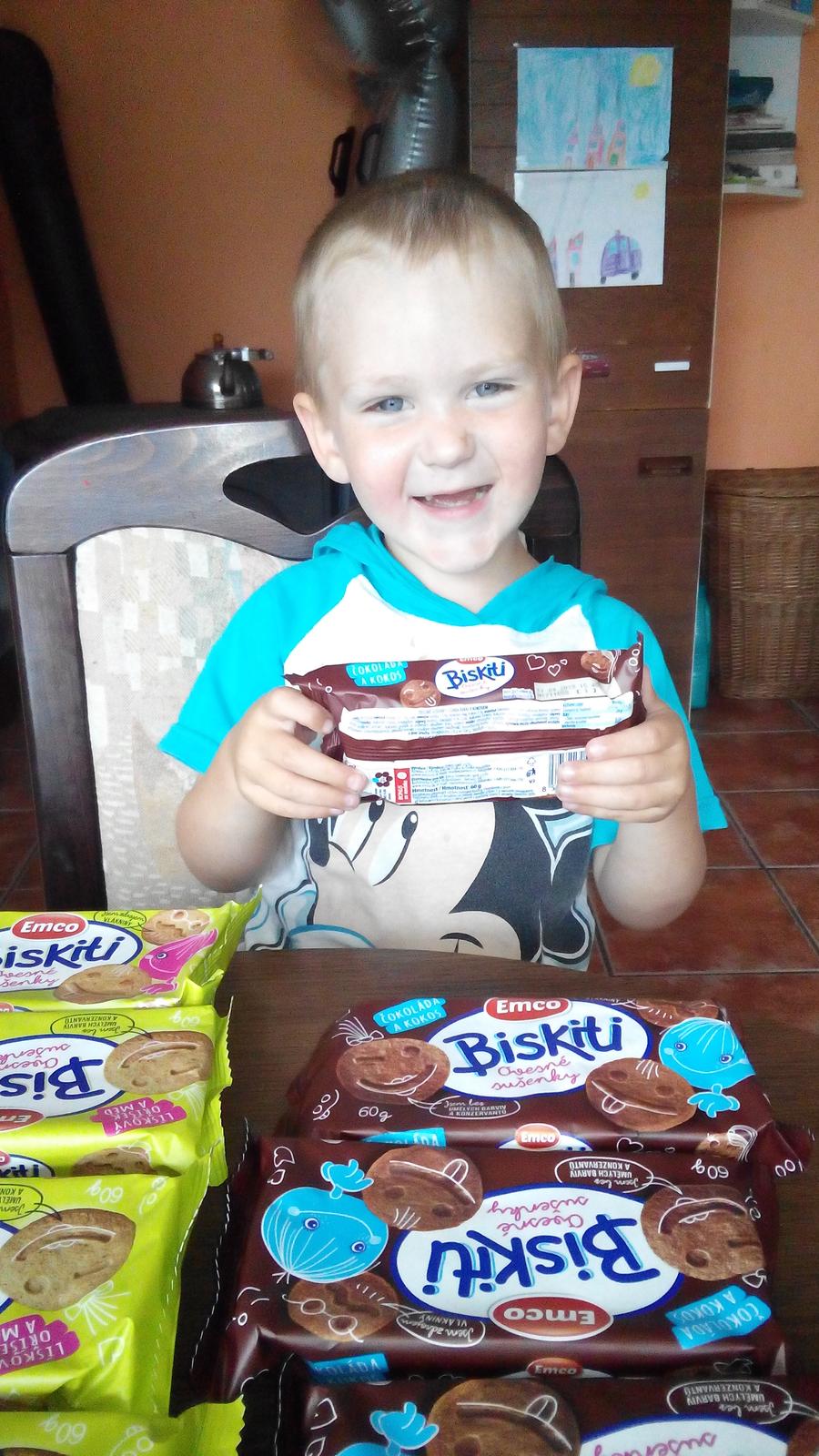 Vojta má ADHD a má dost omezené chutě, jí jen některé druhy jídel a stejně tak jen některé sladkosti, tedy i sušenky. Proto mě zajímalo, jak mu budou chutnat. Vybral si ty čokoládovo-kokosové.