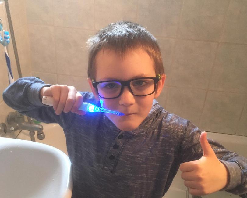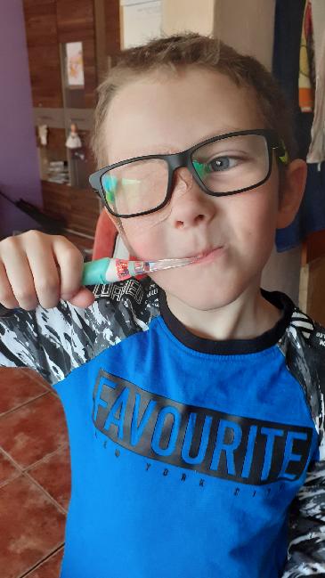 Když jsem viděla možnost testování tohoto kartáčku, hned mě bleskl hlavou Daník a věčný boj s čištěním zubů. Když měl Daník 2 a půl roku, všechny zuby se mu po dlouhodobém braní antibiotik rozpadly a až na spodní dva mu je museli v narkóze vytrhat. Záněty měl až hluboko do kostí a taky podle toho trpěl. Kromě toho, že nechtěl, nenechal si kartáčkem sáhnout do pusinky ani omylem. Nové zuby mu začaly růst až kolem 6. roku, ale ani to nebyla ještě výhra. Když jsem přišla na tohle testování, hned jsem mu to ukázala a byla jsem ráda z jeho nadšení. Po zprávě, že jsme byli vybráni, jsem Daníkovi vše řekla a společně jsme čekali na kartáček. A on konečně přišel.