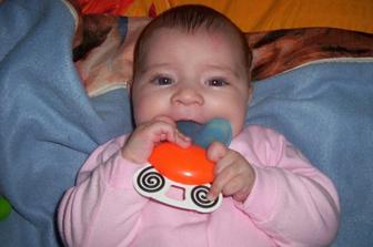 V 6týdnech : 4750g a 58cm, obvod hlavičky 38cm.