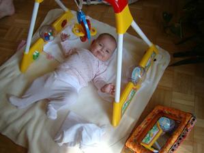 Narodila jsem se 04.06.08 v 20:46. Vážila jsem 3180 g a měřila 50 cm. Jsem moc šikovná holčička, krásně se směju, hraji si s hračkami a pod hrazdičkou, chodím na plavání do velké vany, povídám (aktuálně jsem objevila, že můžu vyřvávat po celém bytě to svoje gáááááááááá, gůůůůůůů) a mooooooc papám..Maminka už mě nekojí od mého ukončeného třetího měsíce ☹, protože ztratila mlíčko, když držela dietu kvůli mojí alergii na kravskou bílkovinu. Takže piju Nutrilon Pepti a jsem stále tlustší a tlustší, obvyklé dávkování mi moc nestačí, pořád si vztekle cucám ručičky a nic z nich neteče a neteče....V poradně 13.9. váha 6620 g a měřím 64 cm. Dostala jsem první dávku hexy. Maminka se bála, že budu mít teplotu, ale pohoda, nic nebylo...