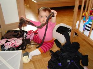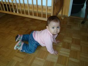 15.3. jsem se ráno vzbudila a dělala paci paci!! Naši jsou nadšeni víc, než kdyby vyhráli ve sportce! Už dělám i papa a dávám mamince dudlíček do pusy, aby si taky podudlala...jsem zlato nejzlatější 🙂) 25.3. občas se mi podaří stát bez držení - třeba, když mám v každé ruce křupku a těch se držím 🙂) 30.3. sama jsem vylezla mamince a tatínkovi na postel...jsem šikulka. 31.3. kamarádce Stellince je 1 rok, v sobotu pojedeme na oslavu, už se moc těším🙂) 10.4. jsem jela poprvé na kole!! Tatínek mi koupil parádní polohovací sedačku a ještě parádnější růžovou přilbičku Uvex s králíčky a beruškami. Jízda se mi moc moc líbí, tahám tatínka za kalhoty a za klíče, které mám jako chrastítko 🙂1.5. maminka si myslí, že brzo začnu chodit, protože už krásně stojím sama bez držení, postavím se ze sedu a nemusím se přidržovat a dokonce už zvládám takové kousky, jako že ze stoje se posadím do dřepu a zpět..🙂) a ťapu, když mě drží za ručičky. Miluji Kouzelnou školku a Františka s Fanynkou. Když slyším znělku, začnu strašně pištět, bleskurychle přelezu k televizi a tam tancuji. 27.5. udělala jsem sama 5 kroků!! ještě si nejsou moc jistá, balancuji a vyrovnávám...ale už to půjde brzy a budu běhat jako drak!