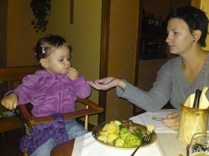 4.12.09 Dnes mi je rok a půl. Jsem moc moc šikovná holčička, krásně opakuji každé slovo a sama také používám správná slova ve správných situacích - např. moje oblíbené "ještééé", "mamíí", "tatííí", "pršííí", "zvířátka" (to když chci koukat na www.hraveuceni.cz), "sluníčko". "číííst" je jich spousta....Chci hrát s tatínkem "tentin" a zpívat "do pěti"... Pokouším se vyskočit oběma nožičkama do vzduchu a běhám jako o závod - hlavně na ulici 🙂 Poprvé jsem jela na kolotoči a měla vlastní jídlo v restauraci. Nejvíc na celém světě mě ale baví Krtek a stále chci koukat na DVD (když se v noci vzbudím, běžím do obýváku a křičím " Tete") Moje nejoblíbenější jídlo je stále brokolice a také hroznové víno. Pořád objímám maminku i tatínka a dávám jim pusinky. Maminka a tatínek mě mají moc rádi a já je taky 🙂