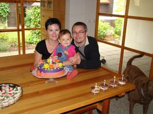 6.6. mi naši uspořádali oslavu narozenin, přišli i moji malí kamarádi - Stellinka, Vojtíšek, Silvinka, Matyáš. Dostala jsem spoustu krásných dárků, Fanynku a Františka, panenku, polštářek, 2 knížky pohádek, bryndáček s kytičkami a od maminky a tatínka růžovou tříkolku.