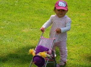 30.7. dělám tanyny - točím se dokola, zkouším chodit pozpátku. Do svého repertoáru zvířátek jsem zařadila koníka, takže umím kočičku, pejska, kravičku, rybičku. Někde jsem se naučila tik tak - hodiny a dělat pích...asi u babičky, naši mě to neučili. Maminka je ráda, že už mě baví si číst knihy, nejraději je stejně ale okusuji.8.8. jsme sly s mami, babi a prababi na hriste Bez bot, bylo to skvele,moc moc se mi to libilo 🙂 30. srpna jsme s našima vyrazili na 14 dní do Chorvatska. Maminka se bála 13ti hodinové cesty, ale já jí připravila zatím největší šok - byla jsem úžasná a vůbec jsem neplakala a všechno krásně snášela. V Brele bylo krásně, ubytování super - nejvíc mě nadchla moje nová hračka - cestovní postýlka, jídlo byl výborné, pláž poloprázdná a moře!! to byla paráda. Nechtěla jsem se z něj hnout, bylo mi dost zima, zuby cvakaly a měla jsem modrou pusinku, ale vydržela jsem, všechny překřičela a přeprala, až maminka rezignovala s tím, ať si tam teda zmrznu a jestli budu mít zápal plic, že mě zabije.... Moc jsem si to užila a všichni se moc těšíme na příští rok a vyrazíme znovu. 🙂