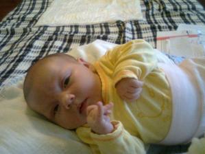 máme 4500g a 51cm...obvod hlavy 37cm......bříško klidné,napapané říkal doktor 😀 😀 , očkování na TBC z porodky má reakci - takovou ideální-je tam červená tečka..takže super...akorát slzíme furt - má zůžené kanálky..tak masírujem a kapem kapičky...ale má to čisté zatím 😉