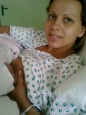 Ve čtvrtek 22.7. jsem jela do nemocky na vyšetření tlaku, měla jsem 140/100 tak si mě tam nechali, nález 3cm... celý den na monitorech, lehké tvrdnutí bříška a fur dokola měření tlaku, druhý den ráno mě viděl primář a udělal vyšetření nález 4cm, prý nebudem to vyvolávat uvidíme v pondělí ....odpolko došla doktorka a prohlédla mě.. nález 5cm, tak mi řekla, že jestli chci tak mi praskne vodu a uvidíme jak se to rozběhne... no chtěla jsem pže váh. odhad měla malá 3450g už...na termín by to byly 4kilča jak vyšité... tak mě poslali nahoru na porodní, tam byla klimoška, krásně mi klesl tlak 130/80 a doc udělala vyšetření nález 5cm v 16hod, pak mi praskla vodu 16:15- vůbec to nebolelo, psala jsem manžovi ať dofrčí, že půjdem rodit , sestra mi dala monitor na ozvy a hned mi začly stahy... bolestivé... jsem jí říkala, že je to mazec a ona ale nic moc Vám to nepíše , pak mě vzala porodní asistentka na porodní sál - super pokojík s vanou porodním křeslem, boxíkem pro miminka a sprchovým koutem a záchodem... jsem se dobelhala do sprchy a sedla na balon a začly šíííííílené bolesti s každou další jsem si říkala, že to už nedám a odpadnu.. bolelo mě břicho dole a kříže.. jak se malá tlačila... poslední už jsem nezvládala vydýchávat tak jsem si tam slušně zaječela.... PA mě už volala abych šla ven a na křeslo, že se podívá jak to vypadá.. říkám to hrozně bolí ....bylo 16:55 hod... a ona, že je to super a že můžem jít tlačit, jsem na ni zírala 😲 tak jsme šli na to, došla druhá PA a pomáhaly mě při stahu rotovat hlavičku malé a držely mi nohy, prostě super🙂... pak došel se podívat doktor .. a najednou manža ve dveřích... PA na něho hledí, ,,no to nám sem nemůže jen tak, to je porodní sál a on : ,,no manželka rodí" tak mu daly plášť a už mi stál u hlavy a pomáhal s posledními asi třemi stahy, kdy sem malou vytlačila ven.. Bylo to úžasné, krásné, malou mi hned dali zabalenou jen v prostěradle , byla celá modro-fialová, maličká Bylo 17hod:16 minut.... takže od prasknutí vody to trvalo hodinu🤐 🙂 🙂