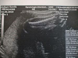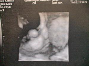 4.1.2010 KO 9tt+2 v pořádku, máme CRL 2,35cm, srdíčko tluče, mimísek si pěkně plaval.