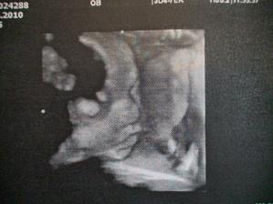 velký utz 2.6.(30tt+4) dopadl výborně, váhový odhad 1823g🙂 malá je hlavou dolů, obličejem na pravou stranu, dle hlavičky odpovídáme tt těhotenství, dle váhy jsme o týden větší🙂) placenta na zadní stěně. Doktor kontroloval srdíčko, ledviny, žaludek, páteř..měřil stehenní kost. ukazoval nám obličej na 2D utz-byly nádhreně vidět rtíky a nosík🙂 takže žádné rozštěpy nebo jiná nemilá překvápka🙂 a dostali sme i 3D fotečku. Sice jen půlku obličeje, pže plod vody už je ve 31tt méně, ale stejně je nááádherná🙂 Jo a pohlaví nám ukazoval, je tam děvčátko nad vší pochybnost🙂
