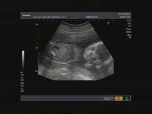 17.8.2007, 12+2tt - I.UTZ - v děloze 1 plod, BPD- 21(12+1), CRL- 59(12+3), srdce se jeví 4 loc, placenta- dors., NT- 1,5.