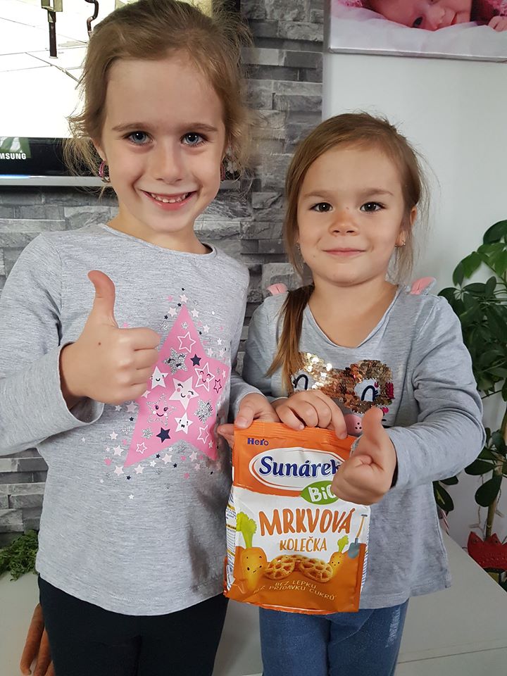 Všichni se na to s očekáváním neočekávaného vrhli. Podle výrazu byli připraveni na sladkou nebo slanou příchuť, jak jsou zvyklí, ale chyba lávky. Při dalším kolečku tomu však přišli na chuť a po balíčku se jen zaprášilo. Ještě před tím jsme ale stihli s manželem ochutnat i my a tak nám to zachutnalo, že nám Mrkvová kolečka budou dělat společnost místo brambůrků 😃