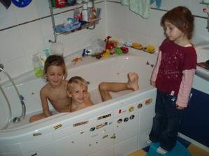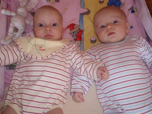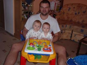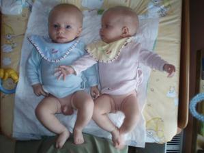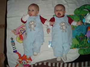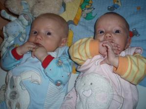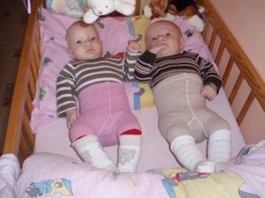 Od 8. měsíce Martínek stojí a snaží se v ohrádce pochodovat.Kristýnka sice nechodí, ale má 2 zoubky.