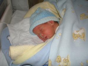 15. 12. 2009 ve 13:12 přišli na svět naši dva krásní kluci. Narodili se předčasně a to o 2 měsíce. Josef jako první, vážil 1580 g a měřil 40 cm a Jiří 1410 g a měřil 38 cm. Oba byli umístěni v inkubátorech na oddělení JIP pro nedonošené děti. Jelikož jsem ještě den před porodem prodělala operaci slepého střeva i já jsem byla umístěna na JIPku. Sem za mnou přišel manžel, který mi kluky ukázal na mobilu, byla jsem moc štastná, že jsou kluci v pořádku, i když byli tááák malinkatí.