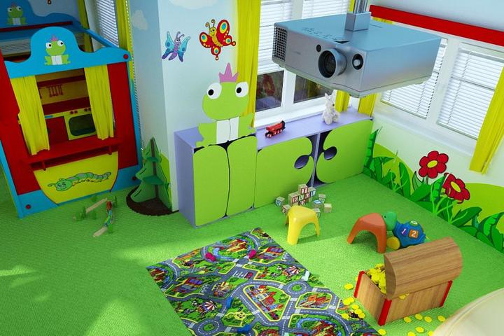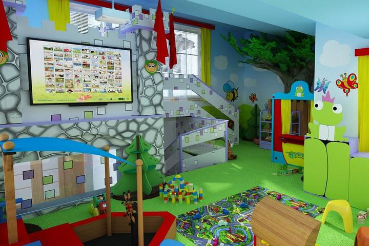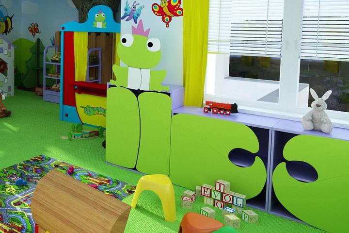 - interiér školky navržený renomovaným architektem s ohledem na účelnost a bezpečí