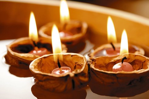 Skořápky vlašských ořechů jsou dalším výborným materiálem pro výrobu ozdob. Opatrným louskáním, resp. otevíráním ořechů špičkou nože získáváme neporušené poloviny skořápek, které pak umisťujeme například na plato od vajec, aby se nám jednotlivé poloviny nepomíchaly. Vezmeme zlatou stuhu nebo zlatý či stříbrný provázek, uděláme očka pro zavěšení (konce svážeme jednoduše uzlíkem), konce umístíme mezi dvě půlky skořápky, kterou jsme po obvodu natřeli lepidlem, a obě části přitlačením spojíme. Vznikne nám krásná přírodní ozdoba na vánoční stromek, kterou můžeme ponechat v přírodním stavu, přelakovat bezbarvým lakem nebo nabarvit.