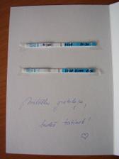 • 1.5.2008 - po třetím měsíci snažení jsem 2 dny před MS zkoušela dělat testík ... a je tam slaboučká čárečka ... ta každým dnem sílí 🙂. Máme za pár dní s manželem narozeniny, a tak jsme dostali ten nejkrásnější dárek na světě...