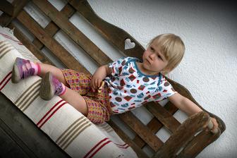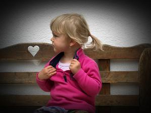 Fotky mých dětí Josífka 19 let a Barunky 19 měsíců 🙂 Měli jsme pronajatou chalupu na celý týden, ideální rodinná dovolená a strašně se mi líbila stará lavička se srdíčkem...Asi hodně stará...Parádní dovolená !