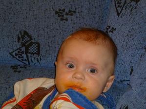 Honzík má ve 4měsících 7,1kg a 66cm...a za sebou druhé očkování...kyčle v pořádku nicméně jadýrka ještě nejsou.je to drak včera s meu poprvé podařilo 3x otočit na bříško ....baštíme již příkrmy asi 14dní 1x za den...a jed enám všechno..tedy jíme jen zeleninu + brambor + zkoušíme domácí kuřátko zatím.Povídá si jako o závod,hejká jako hejkal z lesa a začíná sám pít z chytrého hrnečku,chce si bumbání držet sám. A umí se vztekat a nemá trpělivost...je celej tatínek...a miluje telku