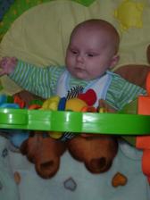 29.5. - Sám se neposadí, ale už vydrží sedět sám bez jakékoliv opěrky.