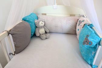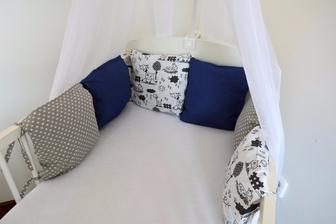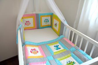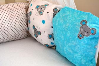 Když už byl Jakub v bříšku rozhodla jsem se, že pro něho také něco vytvořím. Moje vůbec první šití a myslím si, že dopadlo na jedničku. Několik zlomených jehel v šicím stroji, pár kapek krve od špendlíku. Ale ....Jakubovi se dnes spinká přímo božsky....Polštářkový mantinel do postýlky. Jeden do obývacího pokoje a ten barevně jemnější na spinkání do ložnice. Co na to říkáte?