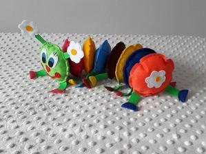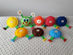 A všechna ta zvířátka? S těmi si "pokecal" už jako miminko. Dnes je mu 9 M a stále pro něho něco tvoříme, třeba jako stonožku na hraní.