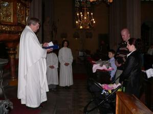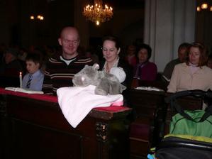 rebeca321:Se mší svatou to trvalo asi hodinu a čtvrt.Byla moc hodná až jsem se divila a neplakala ani při polývání.