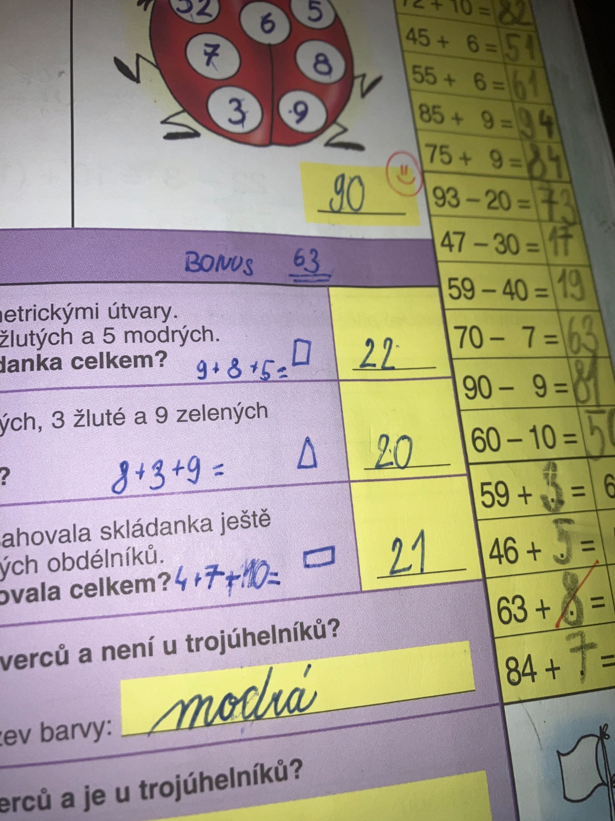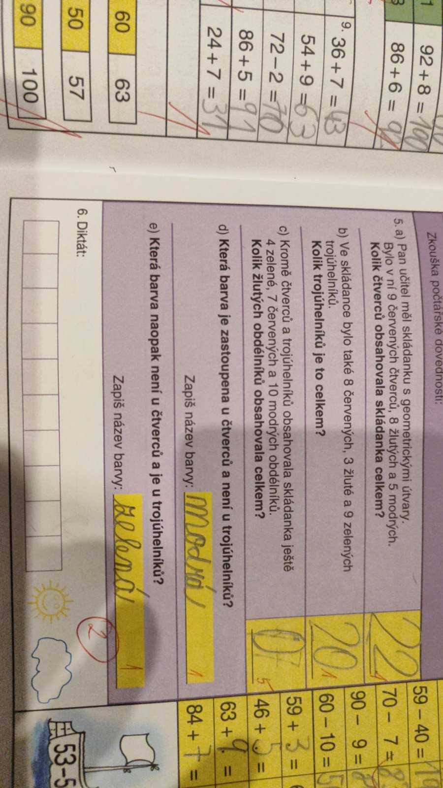 @tedinek Aha, je tam chyba v pracovním sešitě. Procvičují sčítání, otázka měla být bez toho slova "žlutých", ne? Potom stačí opět jen sečíst 3 čísla. Možná je na to paní učitelka upozornila? Nevím, dohaduju se.