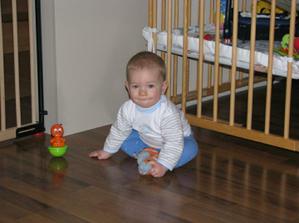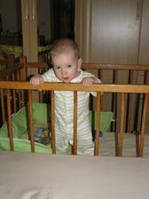 v 7 měs. stojím všude, kde se dá o něco zachytit, do klece už mě skoro nedávají, páč se mé protesty nedaly vydržet🙂)