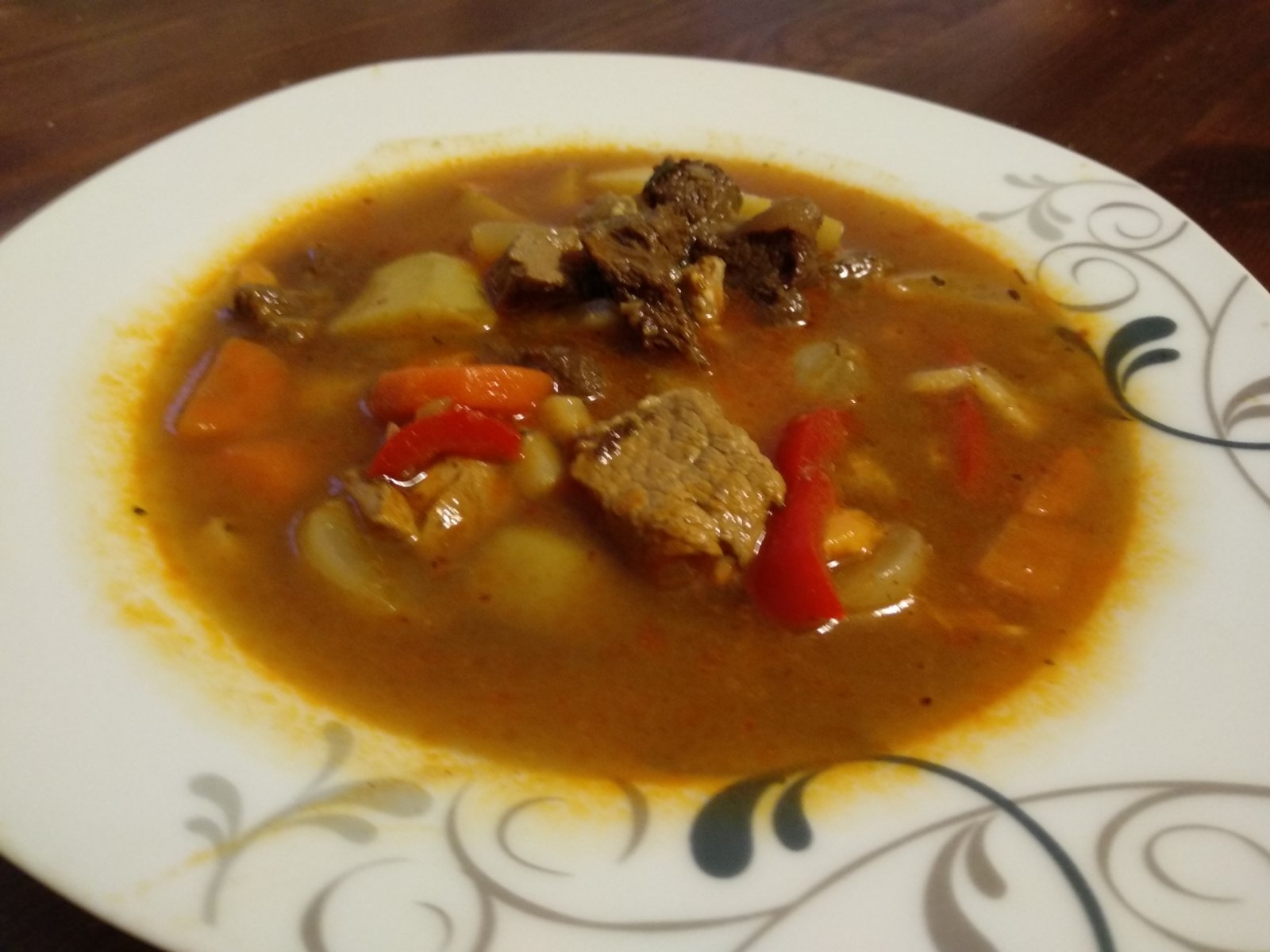 Gulášová polévka se zeleninou a vepřovým s hovězím masem