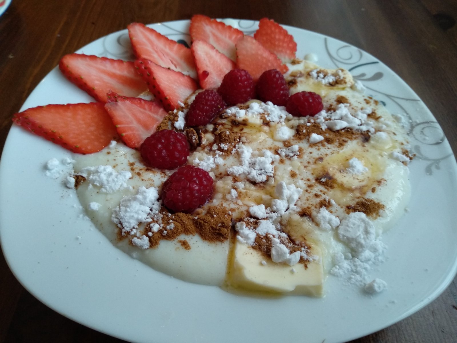 Rýžová kaše se skořicí a ovocem😋😋😋
