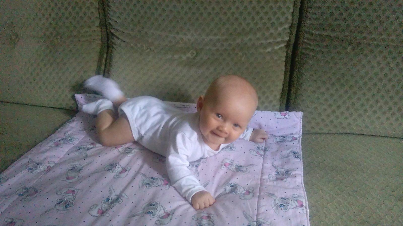 @cukricek123 přesně tak spí i náš malej, na zádech a hlavu nastranu a právě nám paní doktorka říkala, že máme hlavičku fixovat dvěma plenama... On ji rovně neudrží.. Tak já nevím no.. :/