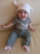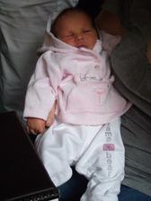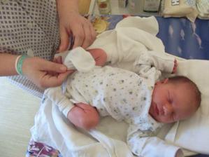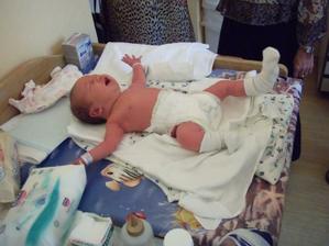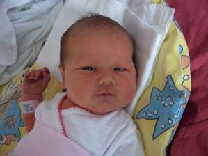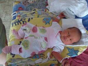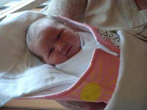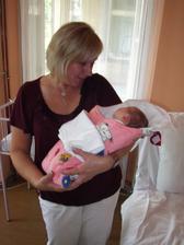 Naše Nelinka se narodila 14.6.2011 ve 14:57 hodin v Podolí. Narodila se předčasně v 36+6 akutním císařským řezem. Jak to všechno začalo. V pátek 10.6. maminka šla do poradny, kde jí byl opět naměřen vysoký krevní tlak a objevena bílkovina v moči s velikými otoky k tomu (za den maminka přibrala 3 kg.). Paní doktorka rozhodla o okamžité hospitalizaci a vyvolání porodu. V pátek byla mamince zavedena 1.tabletka na vyvolání a čekalo se, jenže ono nic a tak se to samé opakovalo v sobotu a mělo to stejný výsledek. V neděli nechali maminku odpočinout a v pondělí to začalo vše znovu a celý den se nic nedělo, teprve večer, když odešel tatínek, tak asi 5 minut poté mamince praskla voda. A té vody bylo tolik, že to nemile překvapilo i sestřičky, připojily maminku na monitor a tam se jim něco nezdálo a tak maminku rychle přesunuly na porodní sál, kde už s náma byl i tatínek a opět se čekalo, zda se něco bude dít. Jenže celou noc se nic nedělo. Ráno byly mamince zavedeny další dvě tablety a po nich téměř okamžitě začala mít maminka kontrakce po 1 minutě, jenže se vůbec neotvírala, teprve v půl třetí odpoledne rozhodl pan primář, že se mu tam něco nelíbí a že se to ukončí akutním císařským řezem. Poté se všechno dělo strašně rychle, kolem maminky začalo lítat strašně lidí a ve 14:57 jsem byla na světě. Tatínka jsem viděla téměř hned a maminku, protože byla v úplné narkóze, jsem viděla až v 18 hodin na JIPce. V nemocnici jsme pobyly 5 dní a dnes nás pustily domů.