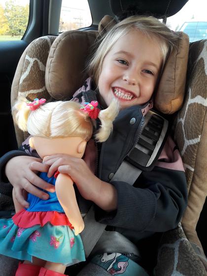 Jak už jsem zmínila, panenka je lehká, a tak se dětem velmi dobře nosí a možná i díky tomu si jí malá docela často chtěla někam brát sebou. Vzaly jsme jí i do školky, tam mezi holčičkami způsobila poprask a podle paní učitelky si jí polovina z nich bude určitě přát od Ježíška.