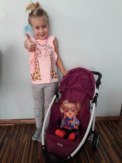 Dobrý den, váš úvodní obrázek zaujal nejen mě, ale hlavně moji malou Emminku, která je momentálně nemocná a odpočívá na mě. Recenzi máte krásně, výstižně napsanou. Mala měla teď rok a půl a je to taková naše,,opecovavatelka". Miluje malinký miminka, pořád jim dává dudlika a nejradši by je všechny pomackala. Ale ještě nemá ten cit a neví co si může a nemůže troufnout. Proto jsou pro ni ideální panenky. Má doma dvě, jednu ještě po mě, chudinku už trošku víc jetou a pak panenku, co dostala na vítání občanku. Pořád jim dává pít své mlíčko, pak se můžu divit, proč jsou pořád tak upaplane. Společně je pak prevlikame do oblečení po Emmince. Od Ježíška dostane kočárek pro panenky a tato nová kamarádka by se u nás měla určitě moc dobře.