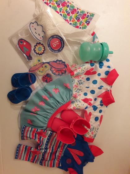 Co bylo moc fajn, je právě zmiňované oblečení v sadě. To je moc hezky zpracované, s možnosti ozdobit nálepkami na suchý zip, a to si malá tedy zamilovala. Každý den ji chtěla převléct a přelepit ozdoby. To jí moc bavilo. A k tomu jí vždy česala a dělala culíčky, což u konkurenční panenky neznáme.