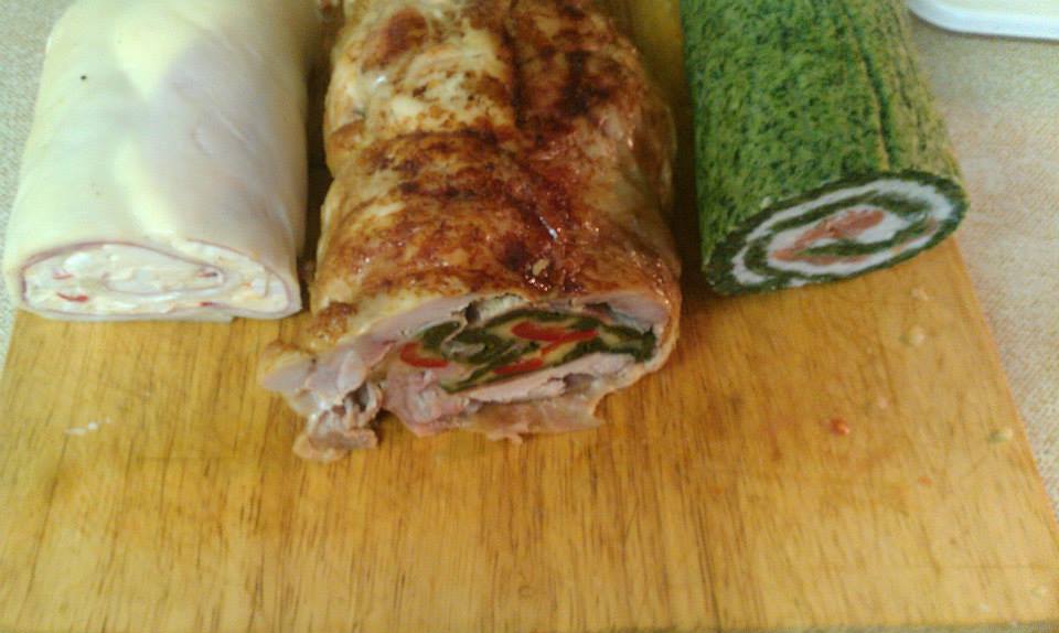 Sýrová roláda, kuřecí roláda, špenátová roláda s lososem