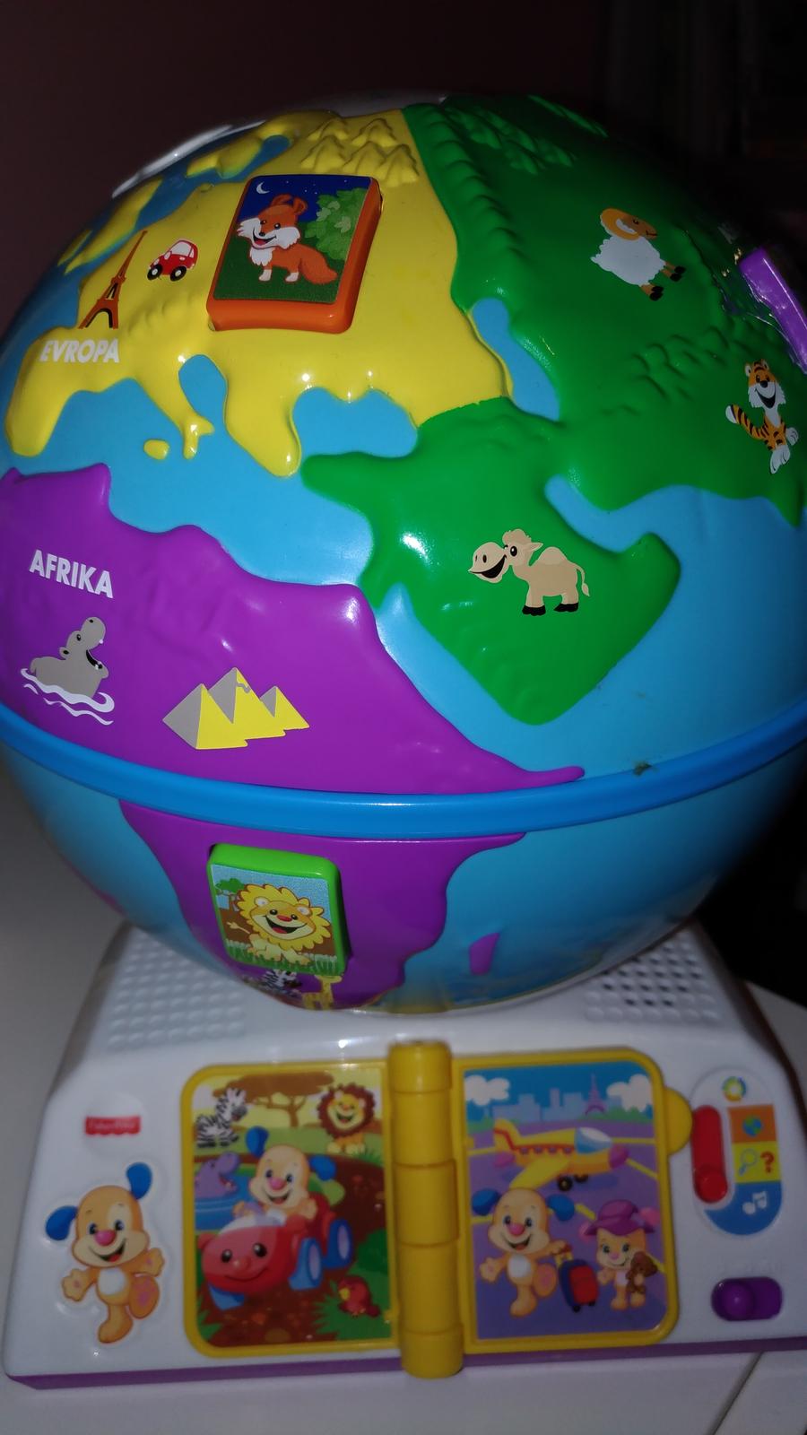 Globus je hezky udělaný, ale na první pohled to pro mě bylo trošku zklamání. Je to poměrně velká a těžká hračka, takže jsem asi čekala, že tam těch funkcí bude trochu víc. Elišku (5,5 roku) začátku nebavil vůbec (když jsem se jí zeptala, proč si s ním nehraje, tak mi odpověděla, že není malé mimino, že už je přeci velká holka a takovou hračku nechá Štěpánkovi - rok a 8 měsíců). Teď se k němu ale celkem často vrací a zkoumá, kde všude je moře a kam bychom tedy mohli na dovolenou 🙂 Vyptává se na Sochu svobody, Eiffelovku (o tý jsem jí vyprávěla, že jsem tam 2x byla a že Paříž miluju, tak hned chtěla vidět fotky a prý až bude velká, tak mě tam vezme🙂) Každopádně Štěpánek ho opravdu miluje, věčně u něj tančí, občas udělá slona, když ho vidí na obrázku, ukáže na auto, letadlo... když se o něm zpívá, a myslím, že až bude starší a bude víc vnímat a chápat, že to bude ještě lepší.