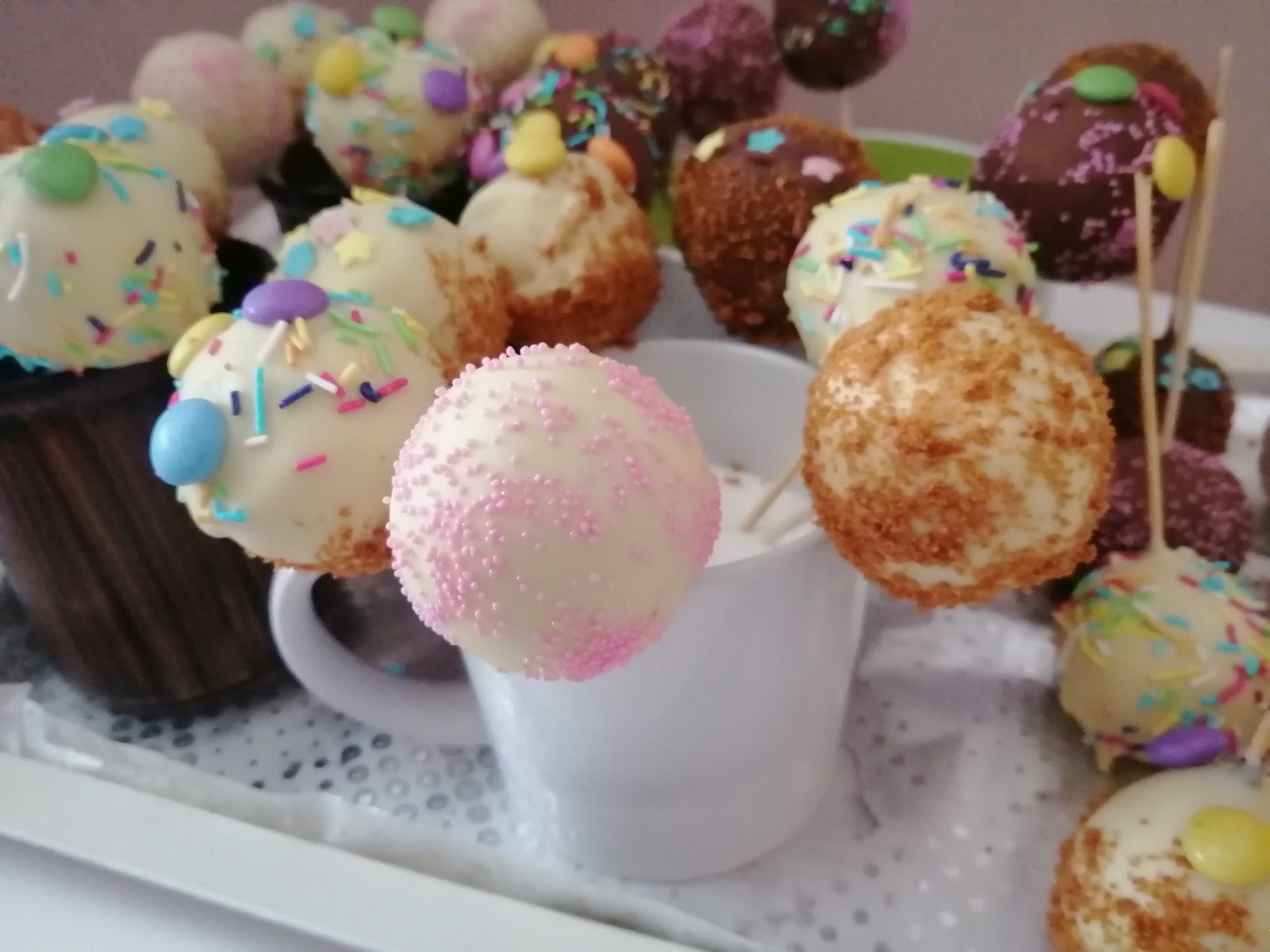 Bol to taký hókus- pókus. Cesto som robila podľa receptu na kokosovú tortu a kokosový krém vlastne tiež ( mascarpone, tuhá časť kokosového mlieka a doma som našla ešte maracujové pyré,tak to som tam dala tiež 🙂 ). Potom som upiekla cesto na plechu, rozmixovala v mixéri, pridala krém a vytvarovala guličky. Potom som si rozpustila trochu čokolády, namočila vždy koniec špajdle, pichla ju do guličky a dala aspoň na 20 minút do mrazáku. Potom som v mikrovlnke rozpustila čokoládu ( pozor fakt treba veľa čokolády. Ono sa to nezdá, ale minie sa jej fakt veľa. A hlavne čokoláda pri namáčaní musí byť vychladnutá, inak potom puká 🙂 ) a namáčala do nej guličky ( treba namáčať trošku primrznuté rovno z mrazáku, rýchlo potom tuhne čokoláda. Ale treba aj rýchlo zdobiť 🙂 ) Dať stuhnúť do chladničky ( dávala som do hrnčekov, v ktorých bol vysypaný cukor, aby som to mohla zapichnúť) a hotovo. Recept je tento ( stačí bohate polovičná dávka, výjde cca 20 lízatiek):https://www.kitchenaffair.cz/kokosovy-dort-s-ostruzinami/