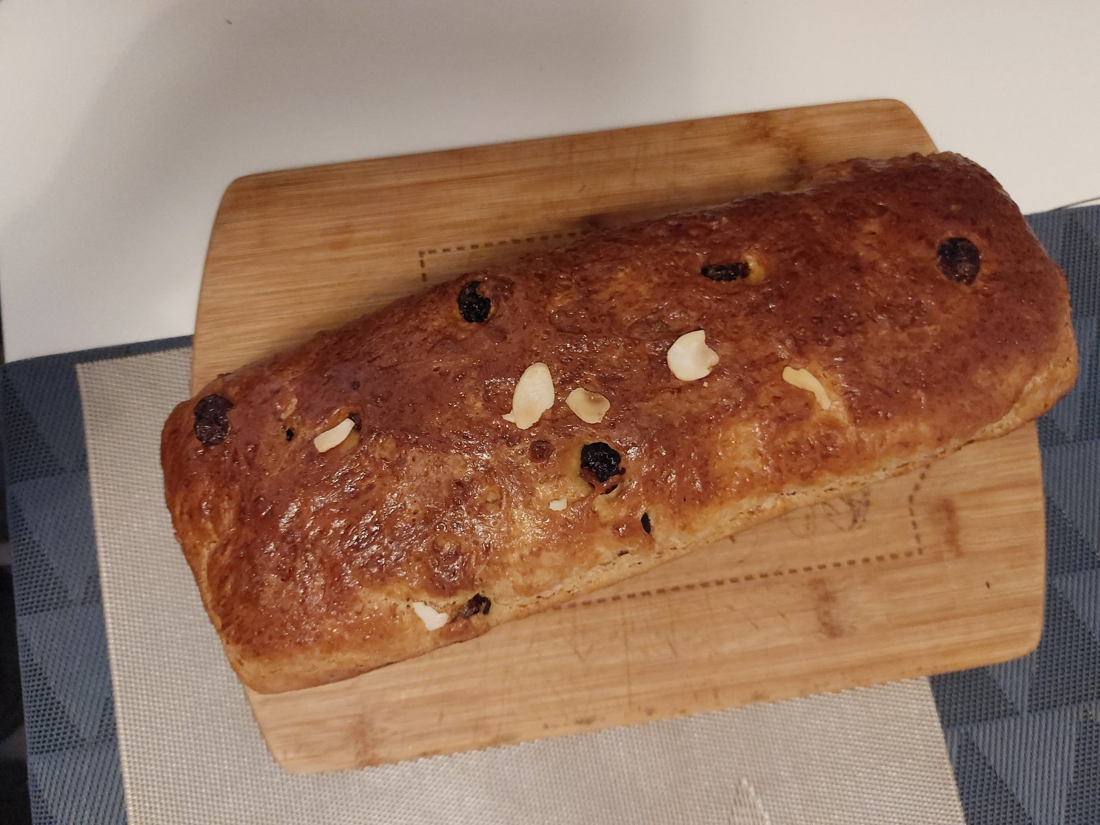 @radusv Určite áno 🙂 Ingrediencie : 100ml mlieka, 60g cukru krupice, 20g čerstvého droždia, 3x vajíčko, 70g masla, hrozienka alebo sušené brusnice podľa chuti, múky ( dala som zmes- 130g špaldová celozrnná, 250g špaldová hladká a keďže cesto je lepivé,tak som pridala ešte 35g obyčajnej hladkej múky). Klasicky si pripraviť kvások ( vlažné mlieko, trochu cukru a polovica droždia), po 10 minútach zmiešať s ostatnými ingredienciemi a vymiesiť ( robila som ručne). Cesto som si rovno preniesla do formy na biskupský chlebíček vystlaný pečiacim papierom a nechala kysnúť 2 hodiny. Potom piecť na 170 stupňoch odokryté 15 minút a potom ešte cca 35 minút prikryté alobalom. Pred pečením prípadne ozdobiť plátkami mandlí a potrieť rozšlahaným vajíčkom s trochou mlieka.