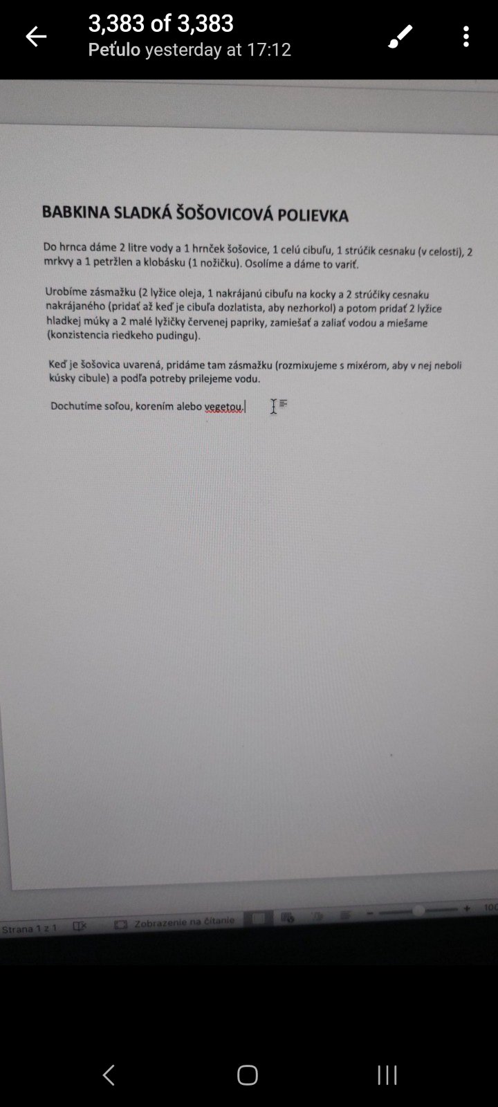 Sladká šošovicová polievka