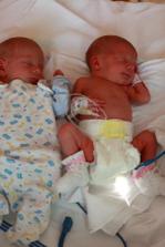 Agátka se Šimonem se narodili v pondělí 6.dubna 2009. Agátka vážila 2100gr a Šimon měl 2750gr. Přestože musela být Aguš v inkubátoru (10dní), tak se jí nyní daří velice dobře. Z porodnice nás pustili domů 22.4.09.