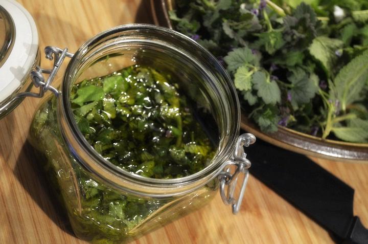 Aromatická bylinná směs v olivovém oleji ke grilovaným masům. Zbytek nasekán a dát na mrazák do omáček, polévek, sálátů.