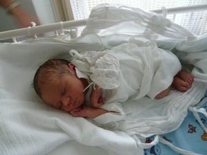 Ráno mi dali po 9.hodině prášek a vpoledne už jsem měla docela silné kontrakce. Oběd už jsem ani nezvládla sníst, nějak to prostě nešlo. Odpoledne jsem začala porocházkovat po chodbě, pak jsem zvládla ještě naposledy vyjít schody do 4.patra. Dali mě na monitor a při kontrole zjistili, že už se začínám otevírat. Na sál jsem musela čekat, protože bylo narváno. Uvolnilo se o půl sedmé večer, to už dorazil i manžel z práce, tak jsme šli na to. Lukášek se narodil v 21:08, vážil 3,33 kg a měřil 50 cm, bylo to docela rychlé.