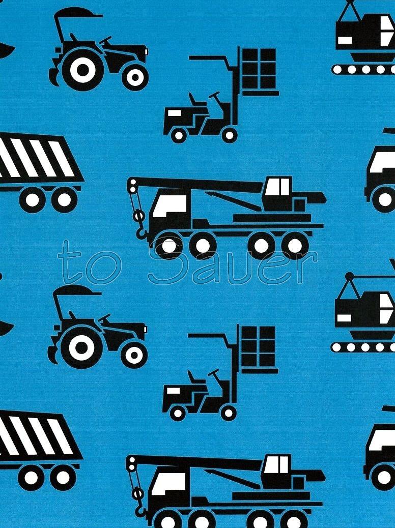 Bagry a traktory na tyrkysové jednolícní úplet, šíře 160cm
