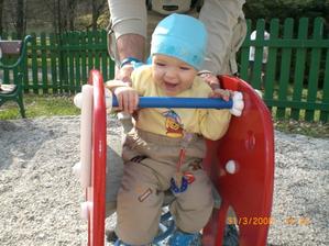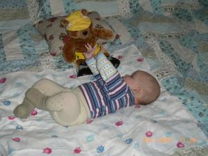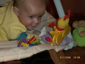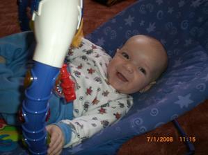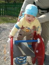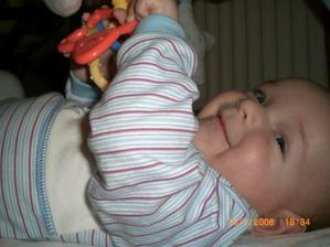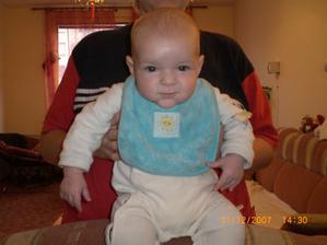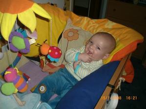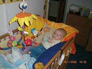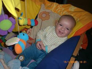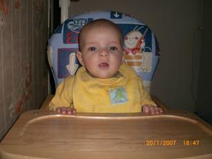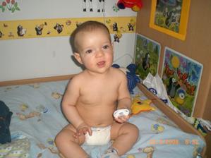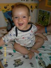 Dnes 3.5 08 mi táhne na 8 měsíc- toto utíká.Už hezky sedím s pomocí i stojím.V jídle nejsem vybíraví.začínám vyslovovat spojení jako je ga ga nebo ep ep.Už mám dva dolní řezáky.Prskám a dost slintám.maminka a tatínek jsou na mě pyšní.Lézt se mi ještě moc nechce,ale už se snažím.23.ledna 2009.tak je mi 16 měsíců a jsem pěkný divoch.Mám 11 zoubků a dvanáctý se klube.Rád si hraju s mamkou na schovku a s míčkem.Běhám a už umím i utíkat a to hlavně když mě chce mamina oblékat.To nejčastěji zalezu pod stůl nebo pod sušák.Jím už dospělácká jídla.Miluju polívky a omáčky.Ale nepohrdnu ani dušenou mrkví. 20.duben2009,19 měsíců -umím chodit s pomocí do schodů a utíkat.Již jsem okusil chut žízků,hranolek a jiná moc zdravá papání.Spojuji slova jako mamí nééé-to velmi často,kde je? - to když hledám klíče nebo ovládač,umím citoslovce hodně zvířátek,jako kočička - čiči,kachničky -gaga,koza- mééé,beránek-bééé a jiná.A nočník?Na ten vám prdím.Děsně u toho řvu a nechci si sednout,ačkoliv vím,na co nočník je.Stále jezdím s maminkou do MC Sluníčka v Chlumci.Kamarádím se tam s tetou Sabinkou a malou Sabinkou.Tatínek už mě seznamuje s míček.Aby ze mě byl fotbálista - taky do něj hezky kopu.