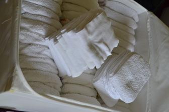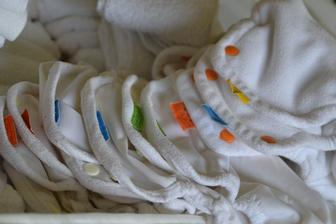 Koho to zajímá, tak jsou to Pastelky od Haipa Daipa, nejstarší typ látkovek na trhu, několikrát oceněny jako látkovky roku. Nicméně já je dostala darem a v tomhle množství ani nevyužiju. Minimum je tak 3x 6ks. Dle velikosti dítěte, ale cca jednu sadu (6ks) na den. Pere se obden, první sada je připravena na použití, druhá sada čeká na praní v koši a třetí schne. A tak to každý den koluje... Na noc můžete přidat savou vložku a fleesové kalhotky, na den pogumované vrchňáčky. Ty se neperou, případné nehody vyčistíme hned v ruce žlučovým mýdlem a necháme volně uschnout (ne do sušičky!). Separačka z netkané textílie není nutná, ale šetří plenky. Počůrané peru v pračce, jinak vyhazuju do koše.