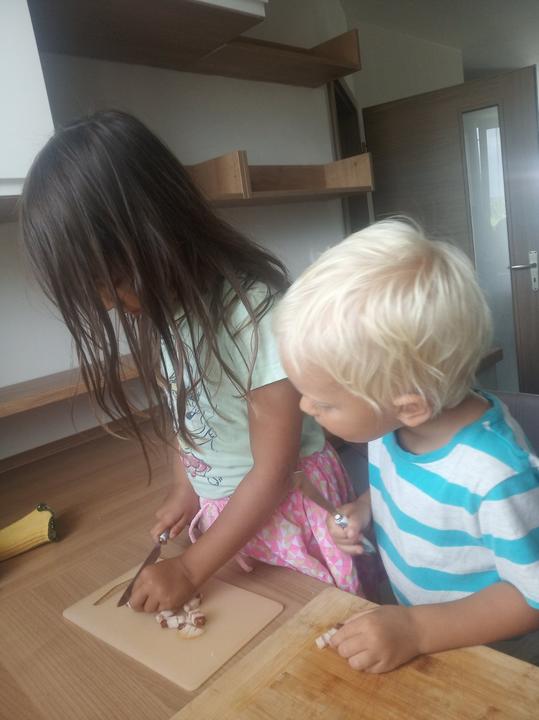 Katka mi před pár minutami koukala přes rameno na monitor počítače. Najednou utekla a po pár minutách se vrátila. Prý : "Taky to umím." A položila mi na klávesnici obrázek. No jasně, zrovna jsem se dívala na výtvory do soutěže u @88petule . 😊