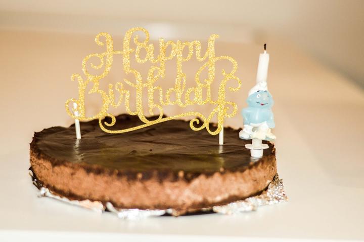 Když je vaše žena totální pečící jelítko, musíte se spokojit s nepečeným cheese cake místo narozeninového dortu. A tak čekáme tatínka, ať s ním dnešní narozky oslavíme. Loňský dort skončil v popelnici, než stihl vzniknout, takže letošek považuji za úspěch.